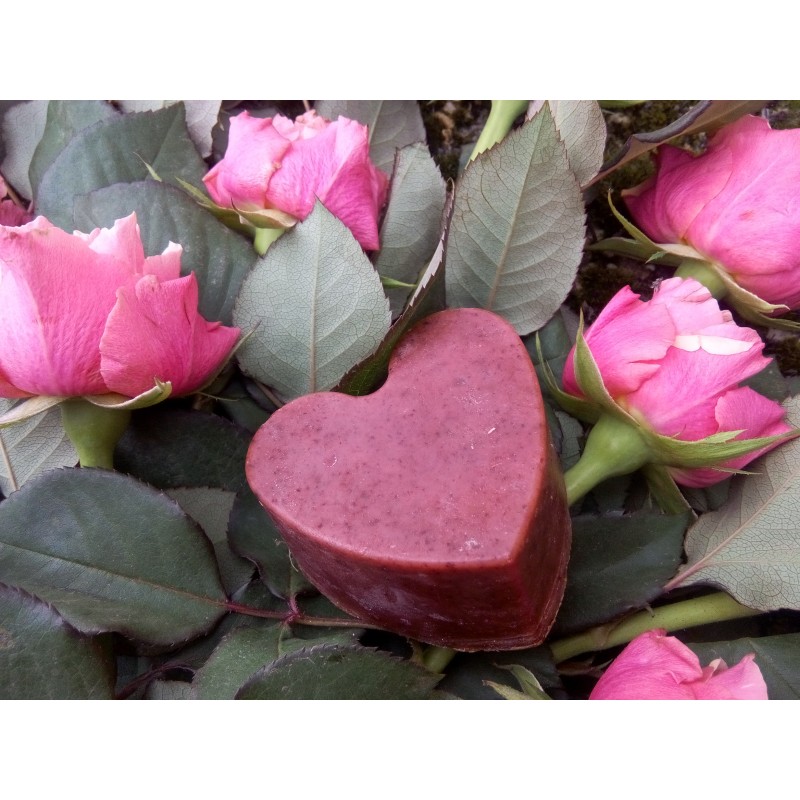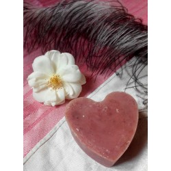 Ingrédients : huiles végétales partiellement saponifiées (olive, karité, coco, macérat de vanillesur une base d'huile de noyaux d'abricots, ricin), lait de chèvre de la ferme Mabilly (St Michel de St Geoirs), huile essentielle d'Ylang-ylang, poudre de garance, huile essentielle de feuilles de cannelier